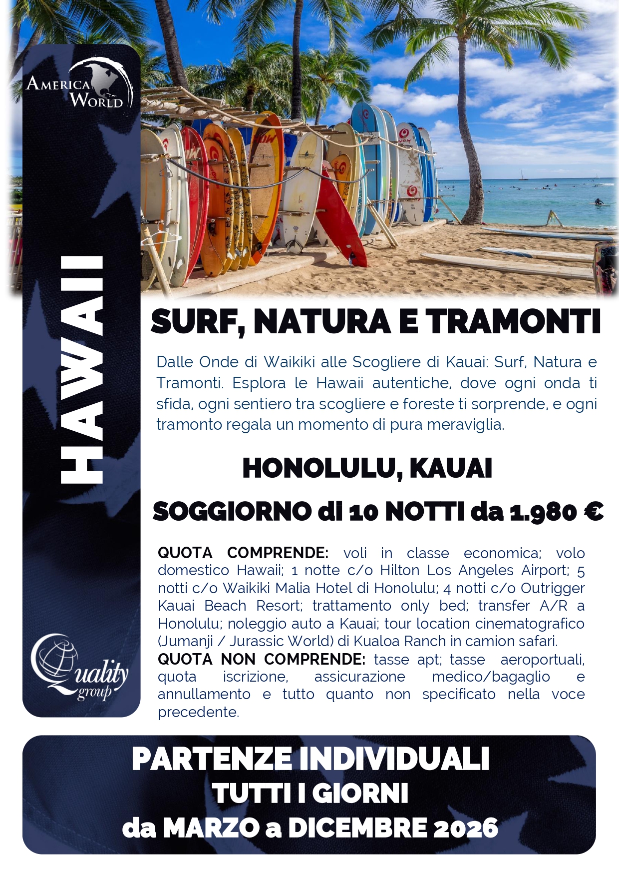 Sappiamo quanto sia importante trovare il giusto equilibrio tra budget e desideri: per questo lavoriamo costantemente per individuare le offerte più interessanti, studiando soluzioni in linea con le tue aspettative. Dal pacchetto per famiglie a quello romantico per coppie in luna di miele, dalle promozioni last-minute per chi ha la fortuna di poter partire con poco preavviso alle tariffe speciali per gruppi: ti proponiamo sempre la formula più adatta, tenendo conto dei tuoi gusti e del tuo stile di viaggio.